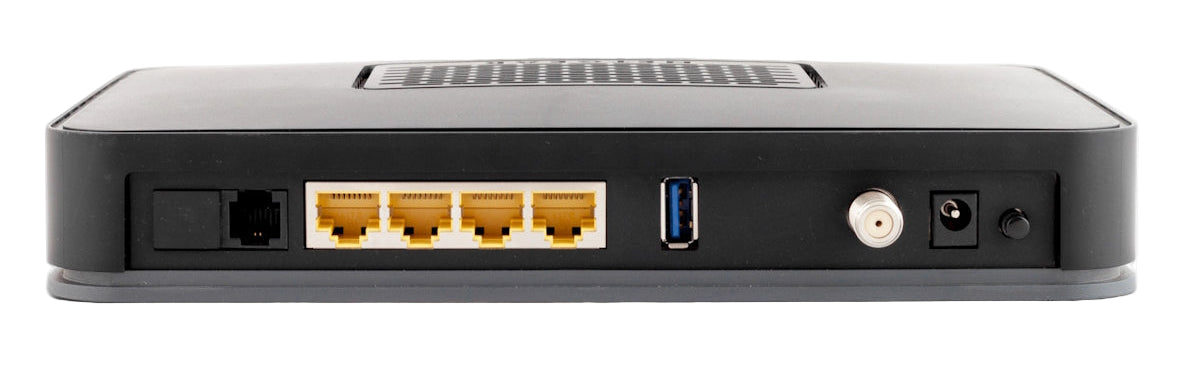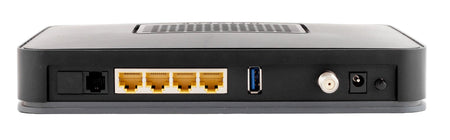 LAN: Four 10/100/1000 Mbps auto-sensing — MDIX, Auto Uplink RJ-45 ports WAN Port: Coax F Connector Wireless: 802.11n in the 2.4 GHz band – access point auto rate capable FXS for analog phones (2 lines) USB Host – 1 Port |