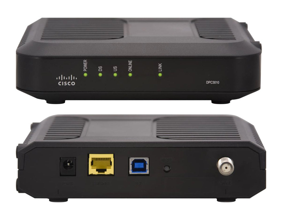 The Cisco Model DPC3010 DOCSIS 3.0 8x4 Cable Modem (DPC3010) provides DOCSIS broadband service providers with a cost-effective solution for delivering high-speed bi directional data services. The DPC3010 provides a faster connection to the Internet by incorporating eight bonded downstream channels along with four bonded upstream channels. These bonded channels deliver downstream data rates in excess of 320 Mbps and upstream data rates up to 120 Mbps, up to eight times faster than conventional single-channel DOCSIS 2.0 cable modems.