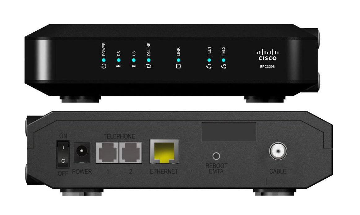 The Cisco Model EPC3208 EuroDOCSIS 3.0 8x4 Cable Modem (EPC3208) is a highspeed cable modem with an embedded digital voice adapter. The EPC3208 provides a faster connection to the Internet by incorporating eight bonded downstream channels along with four bonded upstream channels. These bonded channels deliver downstream data rates in excess of 440 Mbps. That’s up to eight times faster than conventional single-channel EuroDOCSIS™ 2.0 cable modems.