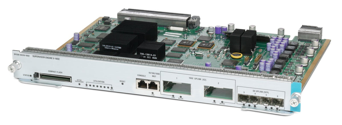 The Cisco RF Gateway 10 Supervisor Engine V-10GE, for the Cisco RF Gateway 10 universal edge quadrature amplitude modulation modulator (U-EQAM) redefines the way aggregation and traffic management features are managed at the edge of the cable network. Specially optimized for the Cisco RF Gateway 10, the Supervisor Engine V-10GE can be deploye in a redundant configuration with automatic failover.